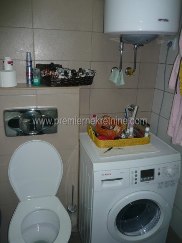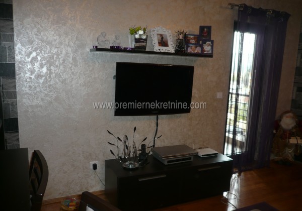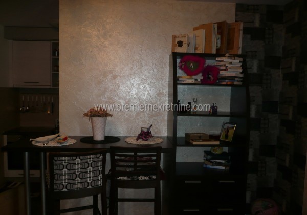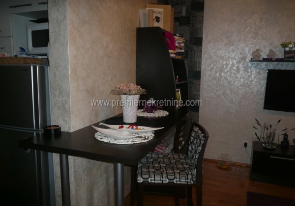 - Stan se nalazi u stambenoj zgradi od 6 spratova,stan je na trecem spratu,zgrada ima lift.Stan je jednosoban,namjesten lijepim i novijim namjestajem,obezbijedjen internet i kablovska,kao i fiksna telefonija.Od kablovske televizije koristi se T comov trio flat,besplatni razgovori u fixnoj telefoniji,internet sa brzim protokom.Od grijanja se koriste podne klime,ukupno dvije,jedna je u spavacoj sobi,druga u dnevnom boravku,u kupatilu kada,masina za ves i susenje.Terasa je mala.Ispred zgrade se nalazi veliki parking,gde uvijek ima mjesta za vozilo.Dnevna soba i kuhinja su izjedna,u spavacoj sobi je francuski lezaj,ugradni plakar,iznad kreveta plakari.U hodniku se nalazi ugradni plakar sa cipelarom i vjesaonikom.Kuhinja je mala,nema masinu za sudje,ugradni elementi,sporet ravna ploca,sank,viseci sto za rucavanje.U dnevnom boravku je ugaona garnitura,plazma TV.Cijena mjesecnog izdavanja je 350eur. Stan je slobodan od 15 Avgusta za izdavane.