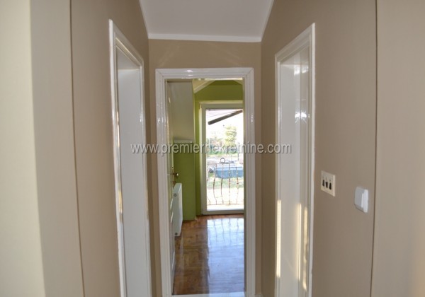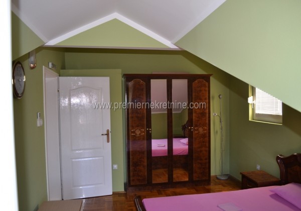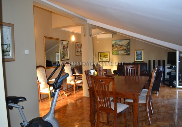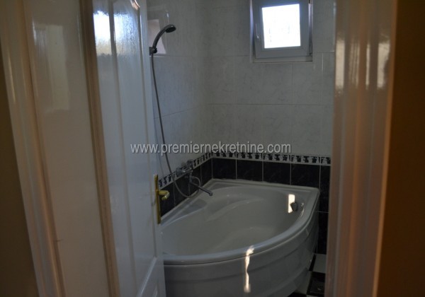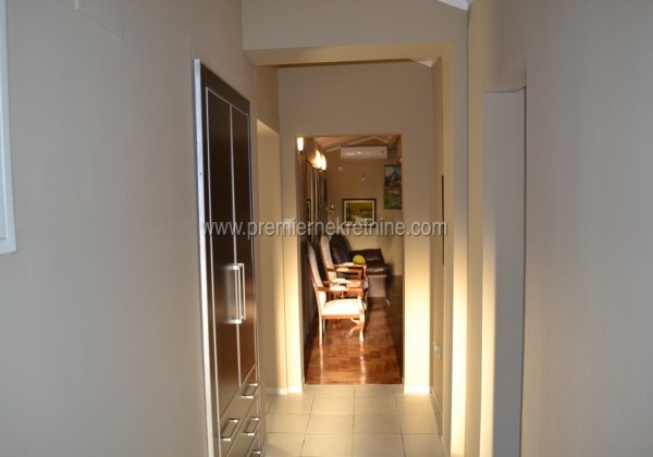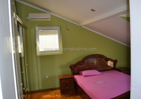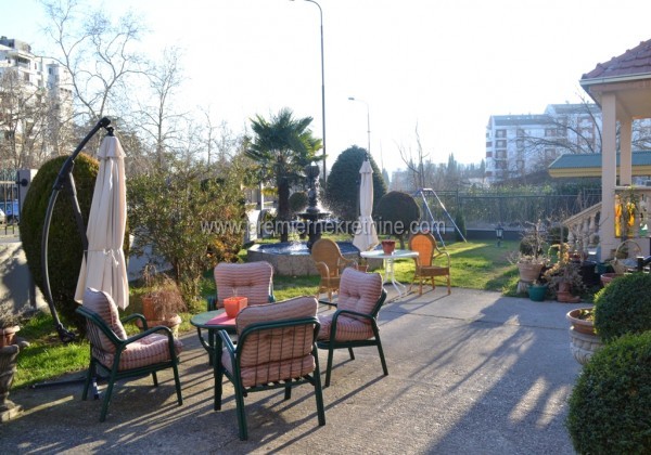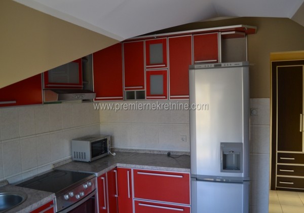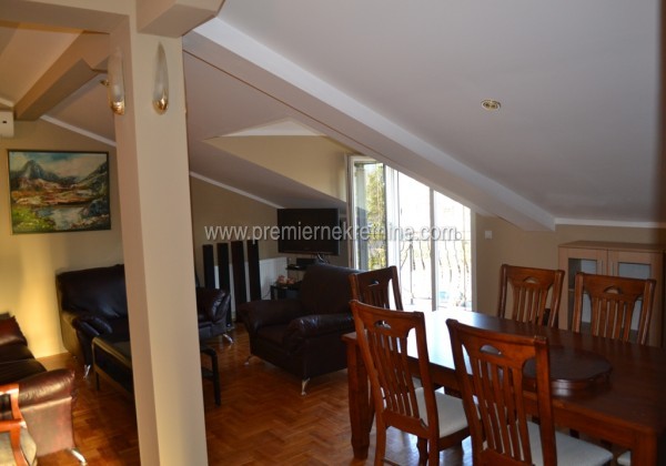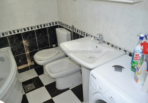 - Stan se nalazi u sklopu kuce,sa zasebnim ulazom.Kuca je na dva sprata,prizemlje,sprat i potkrovlje.Stan se nalazi u potkrovlju.Kompletno je namjesten,novijim namjestajem.Dvije spavace sobe,sa terasama,klimatizovane.Hrastov je parket,pvc bravarija,centralno grijanje.U kupatilu imitacija jacuzzija.Internet,kablovska i fixna telefonija obezbijedjeni.Parking mjesto obezbijedjeno.300m od Kineske ambasade. Cijena mjesecnog izdavanja je 550 eur.