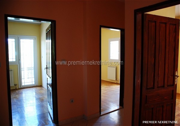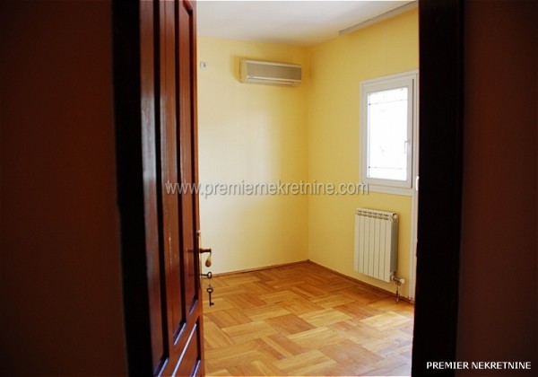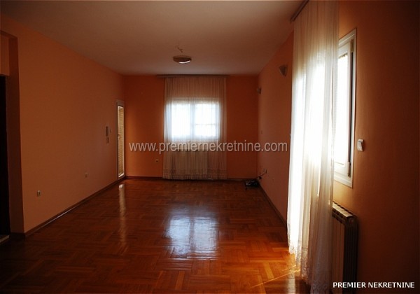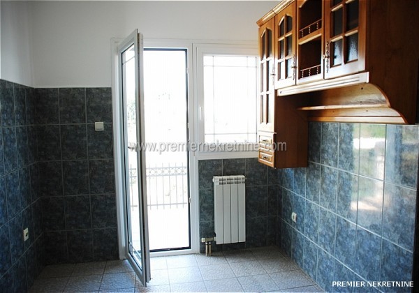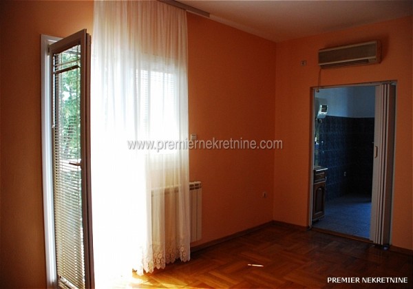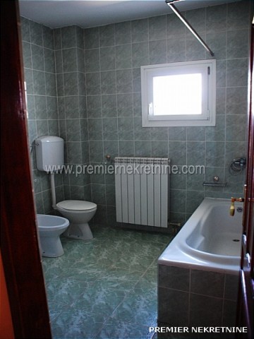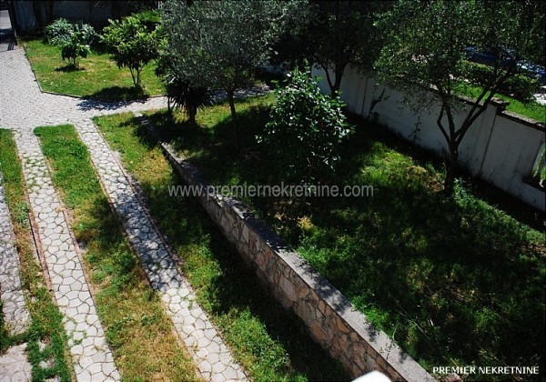 - Povrsina 140 m.Useljiv od Nove godine.Struktura:4 spavace sobe,velika dnevna(oko 25m)i trpezarija,kuhinja,veliko kupatilo i mali wc,1 veliki i 4 manja balkona.Svaka soba ima balkon.Stepeniste je od bijelog mermera,centralno grijanje,klima u svakoj prostoriji.Parking za oko 15 automobila.Dvoriste povrsine 2000m je poplocano,ogradjeno visokom zidanom ogradom sa dvije velike kapije od kovanog gvozdja,22masline,lovori palme.Ima sopstvenu betoniranu plazu na tri nivoa.U prizemlju je firma ,,Jasmil"(Extreme Intimo)vec osam godina.Izdaje se za stanovanje nenamjesteno 450e ili za kancelarije 500e.