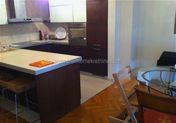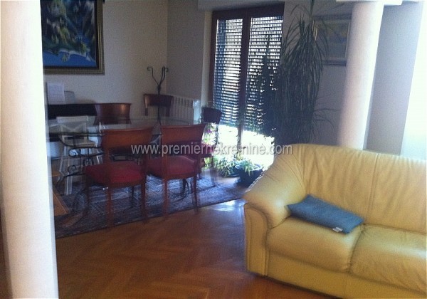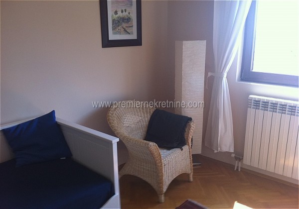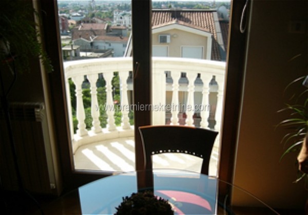 - Lux trosoban stan,na ekskluzivnoj lokaciji,Gorici C.Stan je namjesten i kao takav se izdaje po cijeni od 2000eur mjesecno. Sprovedeno je centralno grijanje,klimatizovano!Stolarija je drvo, a orjentacija jugoistok!Struktura: predsoblje, dnevni boravak sa trpezarijom, kuhinja, tri spavaće sobe, kupatilo, toalet i 4 terase.