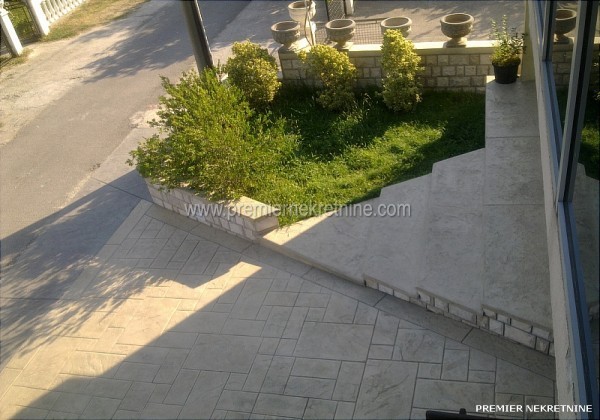- Poslovno stambeni objekat je igrađen u zaleđu jedne od najlepših Crnogorskih plaža Jaz u Lastvi Grbaljskoj,neto površine 419 m2 i placem 550m2 + ( 730m2 uređenog ali ne uknjiženog placa).Objekat je pravljen po svim građevinskim i statičkim normativima i sa ugrađenim vrhunskim kvalitetnim materijalima,jer je objekat pravljen za sopstvene lične potrebe za obavljanje i pružanje turističkih usluga,kao porodični motel,a ujedno ga je lako preurediti u porodičnu Luxs-vilu sa placem koji je sređen.Parking je pokriven savremenim video nadzorom za dnevno i nocno snimanje.Prizemlje objekta je neto 196 m2 sa velikom visinom do ploče a ima dva glavna prilaza,između dva prizemna glavna ulaza nalazi se prijavnica-recepcija koja je opremljena kompletnim namenskim nameštajem gde je ujedno smeštena telefonsaka centrala,kompletna oprema od video nadzora,glavna planirana namena čitavog prostora je da se preuredi u restoran sa odvojenim delom za stoni tenis i bilijar sto i posebno odvojen deo za teretanu sa saunom.Sprat iznad prizemlja je u potpunosti namenski završen,ali se u samom unutrašnjem djelu može preurediti sa minilmalnim ulaganjem u drugačiju konfiguraciju samog stambenog prostora.Sprat se sastoji od 6 stambenih jedinica sa 6 kupatila(jedno wc-kupatilo koje se nalazi u prostoru od 67 m2 nema postavljene elemente a svi priključci su osposobljeni),posebno je odvojena prostorija za vešeraj.Objekat je sada je potpuno opremljeno za izdavanje i življenje u zasebnih 5 stambenih jedinica, koje sve imaju ulazna blind vrata obložena drvetom,vrhunsku podnu i zidnu keramiku,dvokrilna termo alum.balkonska vrata sa stop-sol staklima i uv-zaštitom kroz koja se izlazi direktno na terasu koja je čitavom dužinom ograđena oko 23 metara visokom čvrstom i kvalitetnom rosvajnom ogradom modernog izgleda,ujedno se terase mogu međusobno podeliti.Na započetoj drugoj etaži,koja ima bruto površinu od 250 m2,a gde je planirano još 8 apartmana na tu etažu izlazi završeno armirano stepenište sa završenim zidovima i armiranom pločom nad stepeništem i hodnikom iz koje se izlazi na ploču,odakle se vidi more duž plaže Jaz.Ukupna cena objekta sa placem je 380.000 eura.