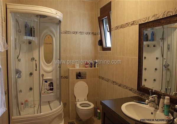 - Novogradnja dvosoban stan luksuzno opremljen sa kompletno novim namjestajem i svim novim uredjajima pod garancijom 1-3 godine. Stan ima dvije velike sobe, veliki dnevni boravak sa prelijepim pogledom na brdo Gorica, kupatilo, wc i ostavu.