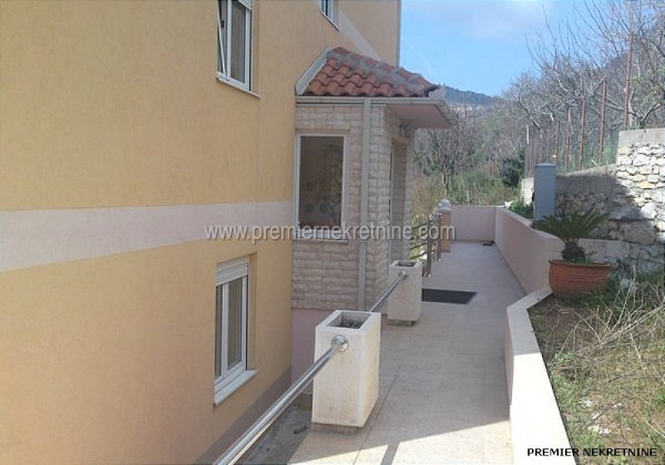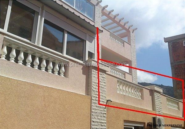- Stan u Budvi kod manastira Majne koji ima 85 m2 dvosoban sa kuhinjom ,trpezarijom,kupatilom, hodnikom, terasom od 30 m2 i garazom od 25 m2 kao i dvoristem koje pripada ovom stanu.Ukupno 140 m2 a cijena 140 000 eura i nema pogled jer ga zaklanja zgrada ispred a udaljen od mora je 2 km.