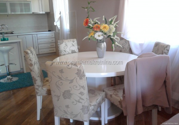 - Stan se nalazi na odlicnoj lokaciji,jednosoban je,kompletno opremljen,luxuzan.Povrsine 62m2.Stan je opremljen novim stvarima,veoma moderno.Vrsta grijanja u stanu su invertine klime.U stanu imaju dvije tersae,tako da i dnevna i spavaca soba imaju izlaz na terasu.U kuhinji ima manji sank sa dvije stolice.Stan ima privatno parking mjesto.