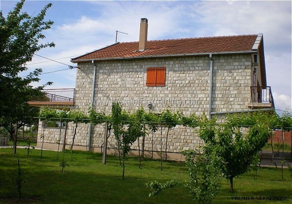 - Kuca se nalazi na periferiji Podgorice,na lijepom i mirnom mjestu.Kuca je na dva sprata,ima dva odvojena stambena objekta.U dvoristu se nalaze jos 3pomocna objekta,ljetnja kuhinja sa terasom,brvnara od 30m2,i stala.Takodje postoji i veliki vinograd.Kuca se prodaje po cijeni od 250.000eur.