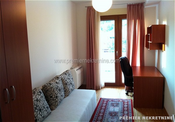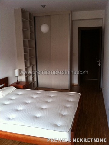 - Stan se nalazi na odlicnoj lokaciji,na najelitnijem mjestu u gradu. Ukupne kvadrature od 77m2, po strukturi dvosoban. Kompletno namjesten i kao takav se izdaje po cijeni od 700EUR mjesecno. Parking mjesto obezbijedjeno.Grijanje je regulisano AC systemom, jedna spoljna komora i 3 unutrasnje.