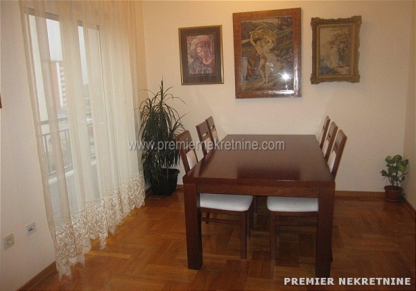 - Stan se nalazi na odlicnoj lokaciji, u novogradnji,na V-om spratu.Ukupne kvadrature od 103m2, po strukturi trosoban stan,kompletno namjesten, veoma moderno i luksuzno.Izdaje se na duzi vremenski period po cijeni od 900EUR mjesecno.