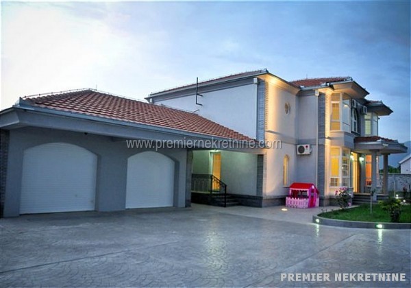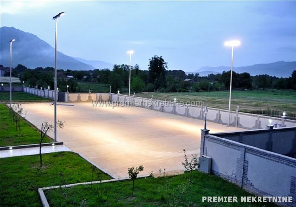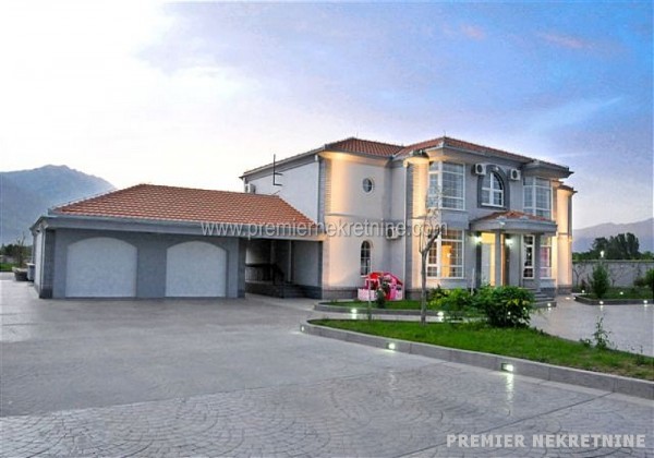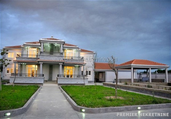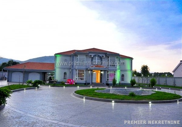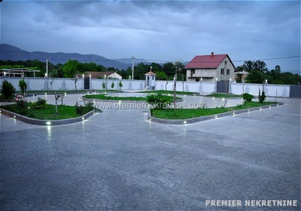 - U srcu Bjelopavlićke ravnice na samo 8km od centra Podgorice, 300m od magistralnog puta Podgorica-Nikšić, nudimo velelepni novoizgrađeni objekat 560m2 na II etaže, koji se nalazi na placu od 11.000m2. kuća je ograđena betonskim zidom visine 2m. Objekat poseduje bazen 10x12m sa kompletnom bazenskom tehnikom, garažni prostor 60m2 s dvoje vrata, podrumski prostor, tri ulaza sa elektronskim kapijama, ekonomski ulaz širine 4m, kompletan video nadzor kao i sistem rasvete na celokupnoj ogradi sa svetiljkama na svakih par metara.U prizemlju površine 280m2 nalaze se dva velika dnevna boravka, kancelarija, vešeraj i dva kupatila i kuhinja.Na spratu površine 280m2 nalaze se šest apartmana sa kupatilima, plus jedna soba i teretana.objekat svojom konstrukcijom, kvalitetom, pozicijom, sigurnosnim sistemima i svim ostalim sadržajima zadovoljava sve kriterijume za nesmetan rad i funkcionisanje diplomatskog predstavništva ( amabasade ).