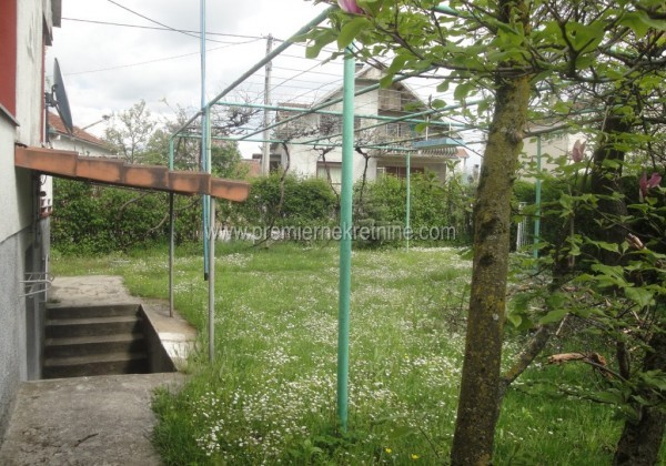 - Struktura: Kuhinja sa trpezarijom i dnevnim boravkom, dvije spavaće sobe sa prostranim hodnikom i toaletom, eloksirana bravarija (nova), savremeni sistem centralnog grijanja (struja, drva+nafta), pomoćna prostorija u suterenu sa kuhinjom. Plac (660m2) sa dva pomoćna objekta u sklopu pomoćnog objekta (garaža) sa kanalom Kuća (103 m2) Uži centar grada Ulazak u dvorište na dva ulaza Izuzetno miran kraj. Kuća renovirana. Moguća zamjena uz doplatu.