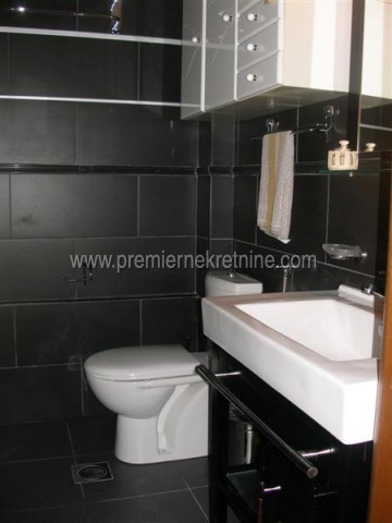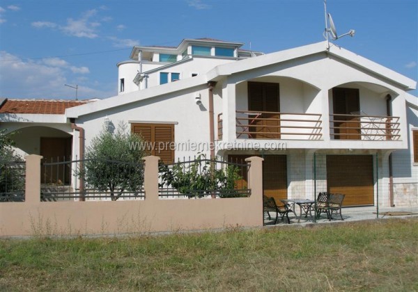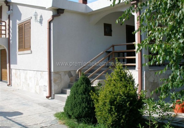 - DUPLEKS KUĆA: DVA STANA PO 85m2 I DVIJE GARAŽE PO 33M2. UKUPNA POVRŠINA 223m2 NA 400m2 PLACA; -LOKACIJA: KUĆA SE NALAZI NEPOSREDNO ISPOD BRDA „LJUBOVIĆ“, KOD KLINIKE “KODRA“ IZMEĐU TURSKE I KINESKE AMBASADE; -OPIS, STRUKTURA, POVRŠINA I OPREMLJENOST STANOVA : Stanovi površine 85m2 sa posebnim ulazom u više nivoa sastoje se od ulazne terase 10m2, hola, wc-a, trpezarije, ostave, kuhinje, dnevnog boravka dvije spavaće sobe od kojih je jedna sa terasom okrenutom ka južnoj strani i kupatila. Spavaće sobe i kupatilo nalaze se u drugom nivou apartmana. Stanovi su luksuzno namješteni i opremljeni što ih čini izuzetno udobnim i prijatnim za boravak na kratki i duži vremenski period. U dnevnom boravku nalazi se, trosjed, dvosjed i fotelja, sto, ugao i dvije komode. U trpezariji sto i stolice. Kuhinja je potpuno opremljena, pored elemenata u kuhinji je montiran šporet sa rernom, frizider, bojler i mašina za pranje posuđa. U jednoj spavaćoj sobi nalaze se tri kreveta, ormar i komoda a u drugoj sobi francuski krevet sa dva ormara i natkasnama. U kupatilu su instalirane savremene sanitarije i kada sa harmonika-zastorom.Ormarići za galanteriju kao i radijator-isušivač vlage. U dnevnom boravku instalirana je Ekstra TV, priključak na Internet, dok je u spavaćim sobama instalirana TV sa satelitskim kanalima. U svim prostorijama instalirano je grijanje – radijatori.