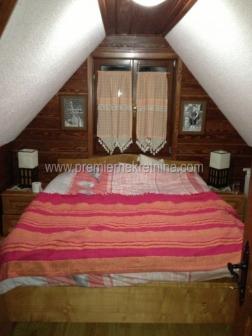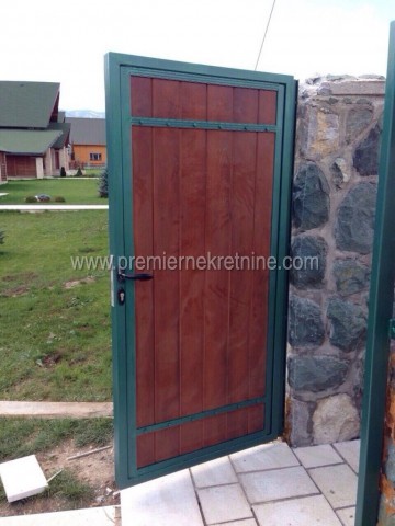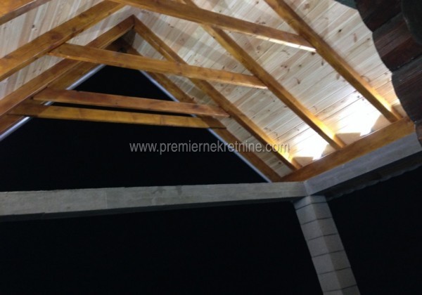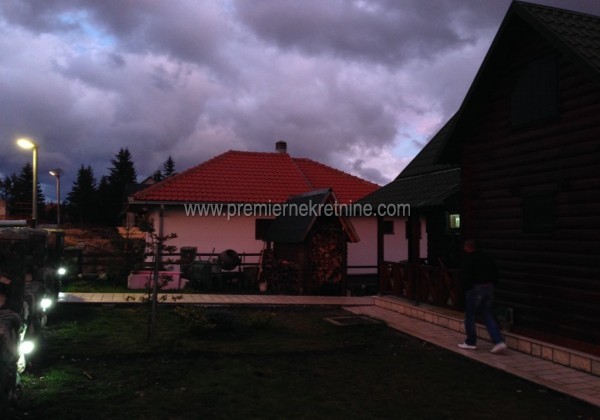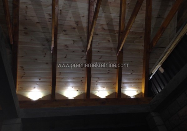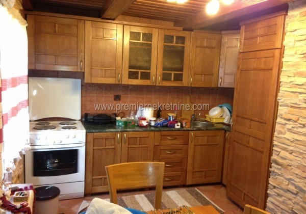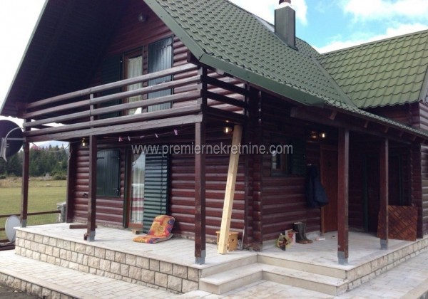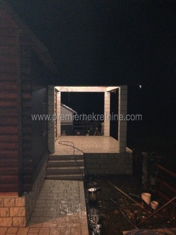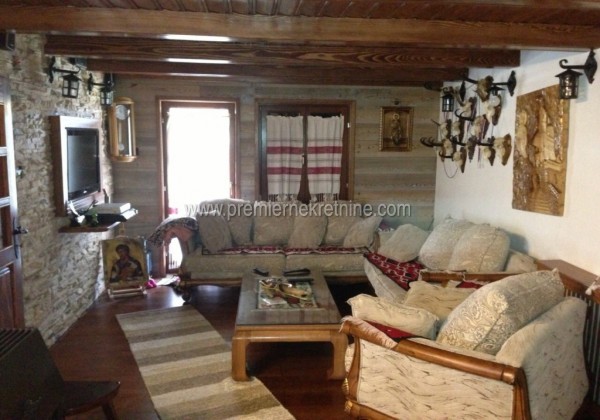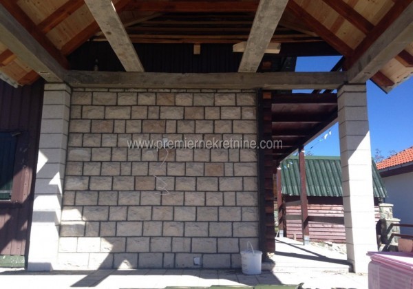 - Dvoriste travnjak drvece prskalice trotoari siroki oblozeni kamenom nikšickim dvije terase na prvom spratu polu oblica spolja ostava ulaz hodnik kupatilo dnevni boravak trpezarija kuhinja stepeniste za drugi sprat drveno presoblje tri spavace sobe sa plakarima i francuskim lezajem centralno hrijanje na sruju kaminska pec alfa na drva drvena kuhinja radjena po mjeri trpezariski sto sa stolicama dvosjed trosjed fotelja stocic zidovi parapropusna folija vatrostalna kamena vuna duple table prva crvena vatrostalna druga zelena vodootporna zavisno od enterijera nedje je preko toga uradjena drvena obloga laminirani austriski četkano inpregniranI bor a nedje kamenom oblozeno a nedje uradjen bavalit da bi izgledalo kao stari zid pod izolacija sikina za bazene stirodur pa preko hrastovi patos dimenzija 20x90 na spratu je dupli borovi patos namjestaj radjen po mjeri za svaku sobu od parene bukve televizor ugradjen u zid satelicki signal Druga vikendica se razlikuje u namestaju isti raspored Bazen za vodu u slucaju nestanka vode.