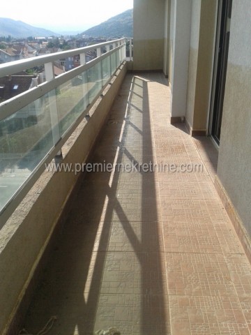 - Stan je dvosoban, u bloku IX, nov, neuseljavan, sa kuhinjom i ugradnim plakarom u hodniku, 70m, terasa je cijelom duzinom stana , sa prelijepim panoramskim pogledom, ima dnevni boravak sa trpezarijom, odvojenu kuhinju,dvije spavace sobe, wc, kupatilo, prostoriju za masinu za pranje vesa-ostavu. Cijena 300 eura.