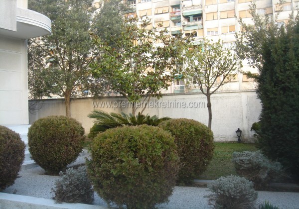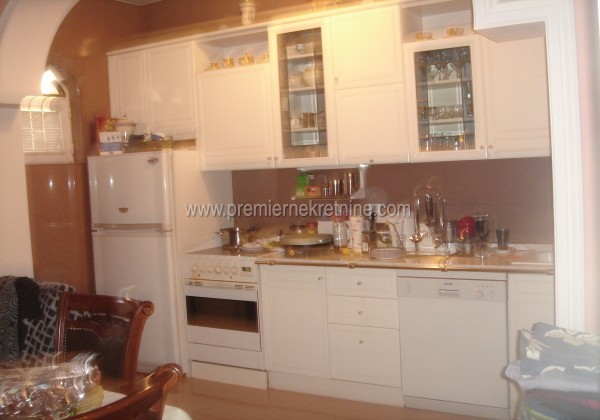- Odlicna i lijepo sredjena spratna kuca koja je organizovana kao jedan cetvorosoban stan, oko 200m2. Na prizemlju su ulazni hodnik, dnevni boravak sa izlazom na terasu, kuhinja koja je odvojena, trpezarija koja ima izlaz na svoju terasu i veliko kupatilo sa prirodnom ventilacijom. Unutrasnjim stepenicama se ide na sprat gdje su jos jedno kupatilo i cetiri spavace sobe koje imaju svoje terase. U suterenu su garaza i ostava od 40ak m2. Nalazi se na lijepom i ogradjenom placu. Izdaje se kompletno opremljena, sa svim neophodnim stvarima. (2 direktna tel.broja-fax, 2 Extra TV-a, parking, centralno grijanje, 3 klima uredjaja).