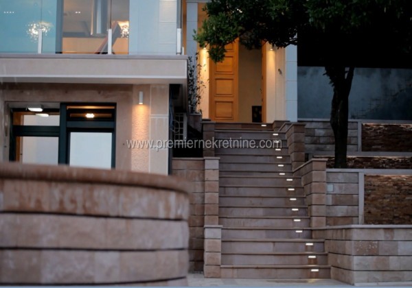 - Opis vile: Poslala sam Vam vec etazni raspored u prethodnom e-mail-u. Vila se nalazi u Djenovicima na placu od 2000 kvadrata, zaklonjenom cempresima sa otvorenim pogledom na more. Posjeduje infinity bazen sa rasvjetom, turbojet-om i posebnom tehnickom prostorijom za rezervnu vodu. Okolni teren je kompletno uredjen, odradjen u kamenu i stampanom betonu, parking, kovana ograda duz cijelog placa, fontana kao mali kruzni tok i vodeni stub, ugradjeni sistem za automatsko navodnjavanje. U objektu je ugradjeno podno grijanje na struju i na solarnu energiju, instaliran je sistem za video nadzor. U prizemlju se nalaze tehnicke prostorije za odrzavanje bazena i jednosoban stan za poslugu. Na prvoj etazi (u nivou bazena) je namjesteni dnevni boravak sa 2 akvarijuma i ugradnim kaminom, italijanska kuhinja sa svim uredjajima (frizider sa ledomatom) i trpezarija. Na toj etazi se nalaze i tehnicke prostorije za pranje i grejanje i sauna i toalet. Oko bazena se nalazi plato sa lezaljka i tusevima,letnja trpezarija i kameni rostilj sa sudoperom. Na drugu etazu se izlazi unutrasnjim stepeniste, gdje se nalaze tri spavace sobe sa zasebnim kupatlima i terasama. Kroz citav objekat i oko objekta isprojektovana je rasvjeta. Fasada vile je od pikovanog kamena, a sva vrata su radjena po narudzibini,uradjen Video link: