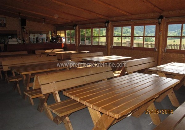 - Prodajem EKO SELO JUGOSLAVIJA Ukupno 7 kućica po 13m2=91m2 2 kućice su bračne 2 kućice dvokrevetne 3 kućice četvorokrevetne Svaka kućica ima bojler. ukupan smeštajni kapacitet za 20 osoba. U sklopu Eko Sela je restoran,terasa,kuhinja i magacin ukupno površine 150m2.Restoran sa zatvorenom terasom kapaciteta za 70 ljudi. Put je asfalt,voda ,struja,TV Total. Zemljište ograđeno površine 6000m2 Urađen parking ispred Eko sela za 30 vozila Eko selo je udaljeno od Šćepan Polja 11 kilometara.Od Eko sela do Brštanovice odakle počinje rafting Tarom je 13 km.To je put za Plužine,prođe se Nikšić .Razdaljina od Podgorice do Crkvičkog polja je 150 km. Cena 300.000,00EUR Za sve dodatne informacije stojim Vam na raspolaganju.Možemo se dogovoriti da dođete i pogledate.