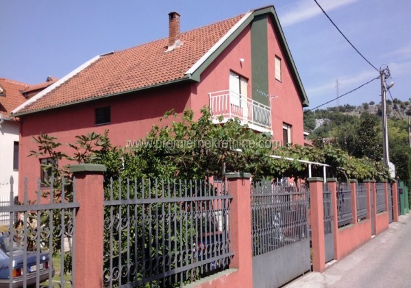 - kuca se nalazi u podgorici u bloku 5 u dalmatinskoj, kuca ima gradjevinsku dozvolu. na postojecem placu dozvoljena je gradnja jos jedne kuce. plac ima oko 500m2 dok sama kuca ima oko 250m2 korisne povrsine... kuca je na tri ipo nivoa ima veliku dnevnu trpezariju i kuhinju jedno veliko kupatilo i dva manja wc, ima 6 velikih soba i jednu veliku koja nije opremljena i sluzi za ostavu... dok se u prizemlju kuce sa bocne strane full jednosoban namjesten stan... kuca je ima vodu struju telefon internet parking mjesta, veliko dvoriste cijena je 350000e Postoi mogucnost korigovanja cijene... na odlicnoj je lokaciji mirno je mjesto bez mnogo buke, iako je bulevar u blizi, na samo je 2km od centra grada...