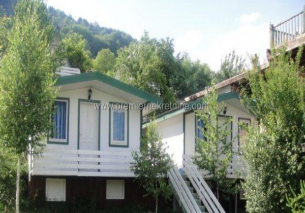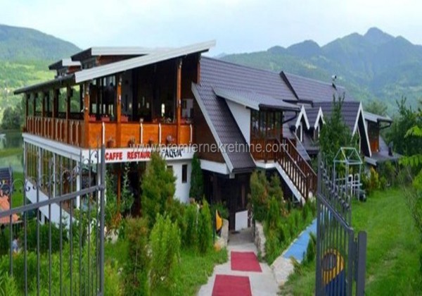- Komplekssadrži: • 5 bungalova sa 22 ležaja • 6 soba sa 18 ležaja • Prostor iznad restorana od 320 m2 namijenjen za izgradnju dodatnih 10 soba • Kafe bar sa šankom (80 mjesta) • Veliku terasu sa šankom (60 mjesta) • Baštu (30 mjesta) • 2 šadrvana (12 mjesta) • Restoran sa šankom (350 mjesta) – Pogodan za sve vrste svečanosti • Konferencijska sala (30 mjesta) • Recepcija • Kuhinju sa pratećim elementima i pekarom na drva • Parking (30 mjesta) • Dječje igralište • Kamping plac • 2 podruma Sve smještajne jedinice raspolažu sopstvenim kupatilom i terasom. Kompleks se nalazi na samoj obali Plavskog jezera i ispred samog objekta se nalazi pješčana plaža. Ukupna površina zemljišta je 3000 m2. Površina poslovnog prostora je 1400 m2. Cijena: EUR 830,000