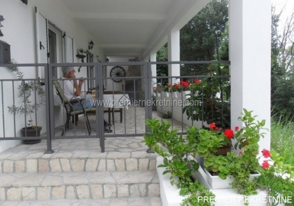 - 500m udaljenosti od mora, dva veca stana sa ukupno 6 soba i dva kupatila, 2 supe, terase sa pogledom na more ukupno 195m2. Od toga je 100m2 terasa na gornjoj ploci jer kuca ima ravan krov. Veoma lako i brzo se moze obezbediti veci pokretni bazen na istoj.Svi papiri uredni. Odobreni i urb tehn uslovi za nadogradnjom visokog potkrovlja. Postoji mogucnost za izdavanjem iste na duzi period, ili pak samo jednoga stana