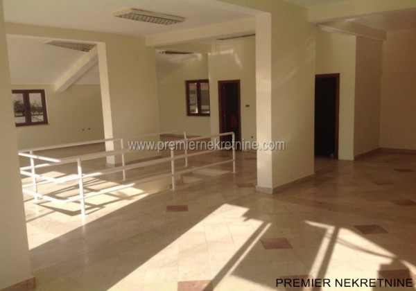 - Ovaj poslovni kompleks se nalazi na placu od 2500m2 i sastoji se iz dva dijela: Upravna zgrada i objekat. Ukupna povrsina slobodnog prostora je oko 1400m2 i sastoji se iz 1050m2 (Upravna zgrada) + 350m2 . Upravna zgrada ima neto povrsinu magacinskog prostora od 950m2 rasporedjenih na 3 etaze + 95m2 skroz opremljenih kancelarija zajedno sa mini-kuhinjom i kupatilom. Nalazi se na prepoznatljivoj lokaciji na samoj raskrsnici dva veoma frekventna puta i kao takav je idealan za sirok spektar privrednih djelatnosti. U sklopu objekta se nalazi parking za oko 25+ vozila. Objekat ima prikljucak za optiku, okrenut je ka jugoistoku i veoma je suncan a posebno dio gdje se nalaze kancelarije. S obzirom da je objekat pred kompletno renoviranje, mi bismo u dogovoru sa potencijalnim dugorocnim zakupcem adaptirali objekat po njegovoj zelji i to o nasem trosku. Cijena po kojoj nudimo ovaj poslovni kompleks od 1400m2 je PO DOGOVORU u zavisnosti od kredibiliteta zakupca i duzine zakupa. Objekti se mogu i pojedinacno rentirati kao i parcijalno po etazama.