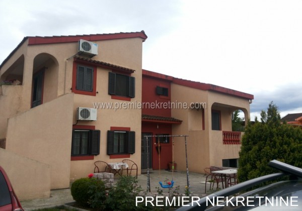 - Kuca se nalazi u naselju Donja Gorica, povrsine 350m2 na tri etaze prvi sprat,dnevni boravak trpezarija-kuhinja i wc, druga etaza dvije sobe i kupatilo treca etaza, tri sobe apartmanskog tipa, potkrovlje- dvije sobe i wc, Kuca ima 7-soba 2-kupatila. 2 wc-a,1-dnevna. svaaka soba klime. dvije telefonske linije,dvoriste ogradjeno, kovana ograda-asvalt, Gracka rasvjeta oko 4km udaljena od centra grada,
