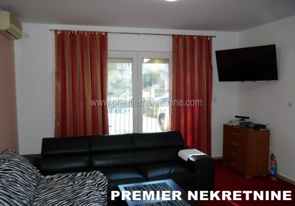 - Dvosoban stan se nalazi na prvom spratu . Područje sa razvijenom infrastrukturom na pešačkoj udaljenosti od glavnih supermarketa , ruskih i crnogorskih škola, apoteka , bolnice, kafići , udaljenost od mora oko 700 metara . Mali stan kuća , ispred kuće ima svoj zatvoreni parking . Ukupna površina 56m2 , veliki dnevni boravak , 2 spavaće sobe , odvojena kuhinja, terasa . Stan je opremljen namještajem i aparatima punom : mašina za sudove, frižider, šporet , mikrotalasna, mašina za pranje veša , 2 televizora , 2 klima , Vi - Fi , italijanski koža nameštaj u dnevnoj sobi , ugrađeni nameštaj . Apartman sa odličnim uslovima za stalni boravak .