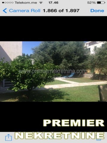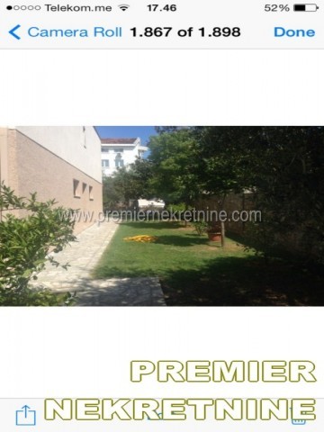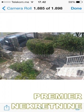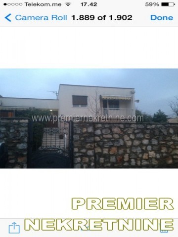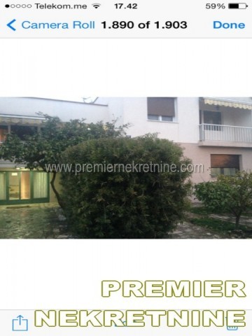 - Kuca 300m2, prizemlje i prvi sprat na dva nivoa. Prvi sprat je cetvorosobni stan od 150 m2 sa 2 mokra cvora, dvije terase sa prednje i 2 terase sa zadnje strane, od kojih jedna povrsine od oko 16 m2. U prizemlju: dvosoban stan od 70 m2 sa posebnim ulazom i zasebni stambeno poslovni prostor od 80 m2, koji je povezan sa prvim spratom unitrasnjim stepenistem, sa dva mokra cvora, dvije prostorije i 2 ulaza. Cijela kuca posjeduje centralno grijanje i klimatizaciju. U kuci postoje 4 telefonske linije, internet, kablovska televizija. Dvoriste oiviceno kamenom ogradom sa 2 ulaza i 2 posebna parking mjesta, ukupne povrsine od oko 450m2. Hortikultura u dvoristu uredjena, redono odrzavana i pokrivena programinarim navodnjavanjem. U dvoristu se nalazi posebni natkriveni objekat, kao mala ostava. Kuca sa dvoristem se nalazi u diplomatskom nacelju, Gorica C.