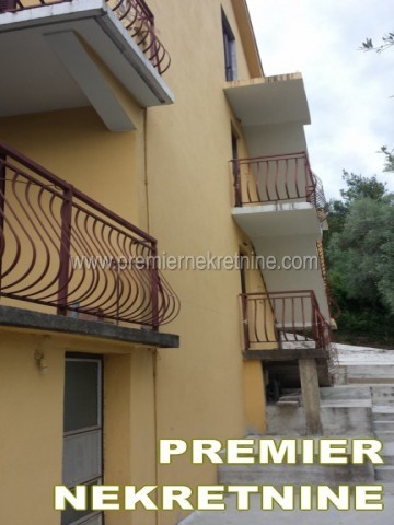 - Prodaja Grad: Tivat Lokacija: Površina 200 m2 Površina placa 80 m2 Cena: 205000 € Sprat: 3. sprat Grejanje: Telefon: 1 linija Nameštaj: namješten po dogovoru Opis: terasa, parking, podrum, telefon, useljiv Način plaćanja: gotovina Napomena: Kuca na prodaju(Tivat),udaljena od mora oko 800m sa pogledom na more i veliki deo Tivatskog zaliva.Kuca je trospratna ukupno preko 190m2,u to racunajuci letnju kuhinju ispod donje terase 18m2, magacin od nekih 10m2 i tri terase od oko 35m2.Kuca se nalazi u mirnom kraju grada iznad nove autobuske i do centra treba nekih 10min hoda.Prvi sprat je kompletno zavrsen(dve sobe,kuhinja,kupatilo,hodnik).Drugi spat(zavrsene dve sobe i hodnik,treba samo plocice u kupatilu i kuhinji izlepiti).Treci sprat je ostavljen za kompletno sredjivanje i moze potpuno imati isti broj prostorija kao i predhodna dva(dve sobe,hodnik,kuhinja,kupatilo i mala terasa sa koje je najbolji pogled na zaliv).Kuca je gradjena za licnu upotrebu sa puno betona i gvozdja cak veoma jaka i protiv zemljotresa.Oko kuce ima jos nekih sitnih dodatnih ulaganja ali je to sve normalno kao i oko svake kuce.