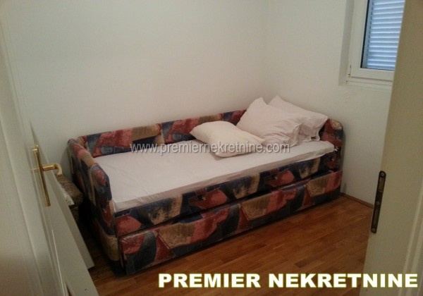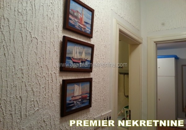 - Što se tiče samog stana, nalazi se u Budvi, na Mainskom putu, u bijeloj zgradi kod Gvozdenog mosta na prvom spratu. Ima dvije spavaće sobe, dvije terase, kupatilo, kuhinju i dnevnu sobu i trpezariju (55m2). U stanu može da boravi 6 osoba (jedan francuski krevet, ugaona garnitura sa mehanizmom za izvlačenje i krevet za dvoje u "maloj sobi"). Stan je komforan i u potpunosti opremljen. Terase su takođe opremljene mobilijarom (plasticni sto i stolice za obije terase). Što se tiče iznajmljivanja, cijena za cijelu godinu je 470e mjesečno, a 70e dnevno u toku sezone.