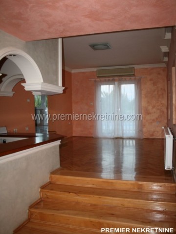 - Izdaje se kuća sa bazenom u Donjoj Gorici ukupne površine od 400 m2 po cijeni od 1 200 € . Prizemlje kuće se sastoji od: dnevnog boravka, lođe, trpezarije, kuhinje, kupatila a u suterenu se nalaze vješeraj i prostorija sa sistemom za grijanje. Prvi sprat se sastoji od: 5 spavaćih soba, 3 kupatila, jednog toaleta, spoljne terase i unutrašnje garaže. Plac je ukupne površine od 2 500 m2 sa spoljnom ogradom i ulaznom kapijom za vozila/malom kapijom. Postoje uređena parking mjesta za 4-5 vozila. Bazen je sa zadnje strane kuće, dimenzije 12 x 4 m.