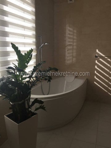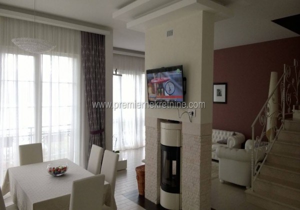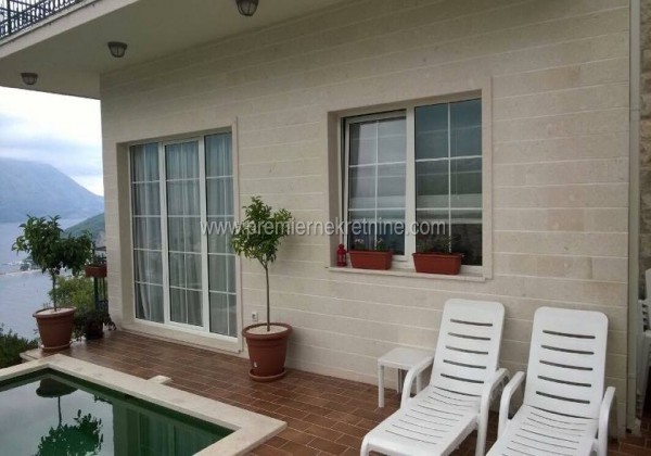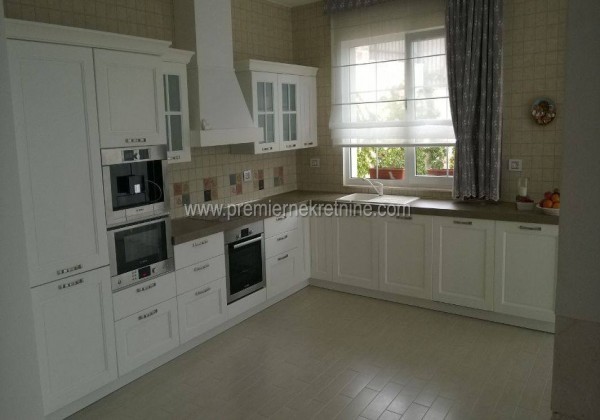 - Prodaje se namještena kuća na malom brdu u prestižnom dijelu Budve , što osigurava prekrasan pogled na Jadran, na ostrva Svetog Nikole i Svetog Stefana, a na desetak minuta hoda od centra grada. Velika, udobna, funkcionalna kuća površine 190 m2, na placu od 400 m2, je izgrađena 2013-e godine. Elegantna fasada od marmura snijeg-bijele boje pomaže kući da se idealno uklapa u okolni ambijent i odgovara klasičnoj arhitekturi Mediterana. Lijepo uređen vrt sa zelenilom citrusa (grejp, kumquat, hibridni limun, narandže, mandarine), palme . Na placu se nalazi bazen s moderiom sistemom čišćenja bez upotrebe hlora. Kuća posjeduje kamin, ekskluzivni namještaj, kuhinju s uređajima Bosch, moderni sistem grijanja i podno grijanje sa centralnom klimatizacijom. Cijena kuće je 790,000 €