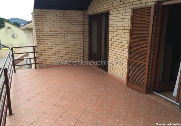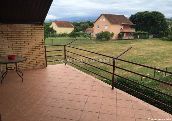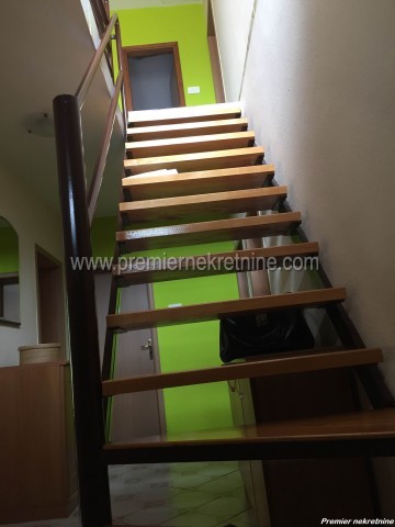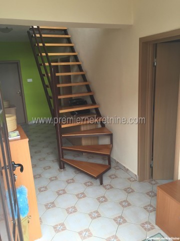 - Kuća je površine 160m2 + 71m2 terase + 20m2 podruma.Prizemlje kuće čine: (Dvije spavaće sobe, dnevni boravak,kuhinja sa trpezarija, ostava i kupatilo).Sprat kuće čini: (Dvije spavaće sobe,kupatilo,dnevni boravak sa kuhinjom i trpezarijom- mogućnost zasebnog ulaza za sprat kuće).Kuća je smještena na placu od 425m2 i nalazi se u dobrom stanju.Cijena: 143.000,00€