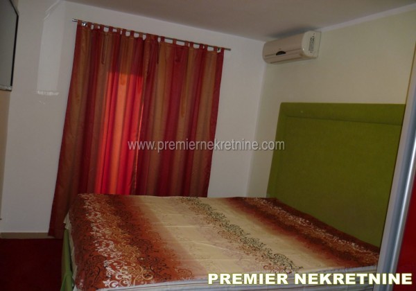 - Dvosoban stan se nalazi na prvom spratu. Područje sa razvijenom infrastrukturom na pešačkoj udaljenosti od glavnih supermarketa, ruskih i crnogorskih škola, apoteka, bolnice, kafići, udaljenost od mora oko 700 metara. Mali stan kuća, ispred kuće ima svoj zatvoreni parking. Ukupna površina 56m2, veliki dnevni boravak, 2 spavaće sobe, odvojena kuhinja, terasa. Stan je opremljen namještajem i aparatima punom: mašina za sudove, frižider, šporet, mikrotalasna, mašina za pranje veša, 2 televizora, 2 klima, Vi - Fi, italijanski koža nameštaj u dnevnoj sobi, ugrađeni nameštaj.Apartman sa odličnim uslovima za stalni boravak.