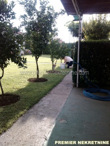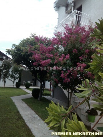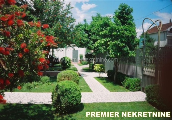 - Posjed na prodaji u Podgorici,Montenegro Opsti podaci Dvije kuće opremljene i konforno namještene za stanovanje, na veoma oplemijenjenom placu 1118 m2, okružen sa ukrasnom zimzelenom ogradom (pittosporum) i raznovrsnim voćnjakom na cca 320m2 (kao izdvojenom cjelinom). - Veća kuća površine 200m2, plus terase 41m2 (nova hidro-termička izolacija sa bavalit fasadom, centralno grijanje na čvrsta goriva i el. struju, klimatizacija, elektronska zaštita objekta, 2 telef. linije, kabl. tv, internet). Kuća ima 4 nivoa sa po 50m2 (plus velike balkonske terase) medjusobno povezani unutrašnjim stepeništem. Suteren (uredjene tri višenamjenske prostorije,ostava, kupatilo,hodnik); Izdugnuto prizemlje ( na visini cca 1,5m) dnevni boravak sa trpezarijom,terase, kupailo, hodnik); Sprat (tri spavaće sobe sa terasama, kupatilom, hodnikom); Izdignuto podkrovlje (uredjen višenamjenski prostor sa terasama, hodnikom i kupatilom (izvedene sve instalacije bez opreme). - Manja kuća, prizemni objekat (u pozadini veće kuće) površine 120m2 (dnevni boravak, trpezarija, kuhinja, dvije spavaće sobe, kupatilo, ostava), lodja 17m2 i terasa 7m2. - Garaža - zaseban objekat od 30m2 sa većom nastršnicom od 20m2 (u pozadini) kao visenamjenski prostor. - Pomoćni visenamjenski objekat 26m2 Kuće su kompletno konforno opremljene i namještene za stanovanje. Lokacija udaljena od centra grada (hotela „Hilton“ - stari hotel „Crna Gora“) nepuna 4 km. bulevara, lokacija autonomna, obezbijeđena privatnost, objekti povezani na gradsku kanalizacionu mrezu, uknjiženo, posjedovni list, izvod iz plana , vlasnistvo 1/1. Za prodaju - nije djeljivo. Prodaja posjeda je iskljucivo radi porodične selidbe.