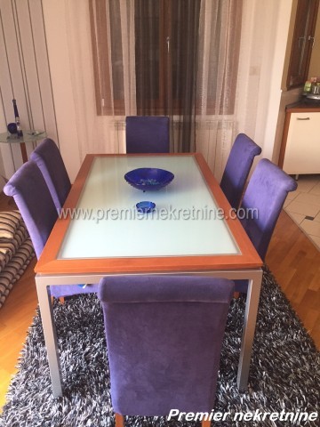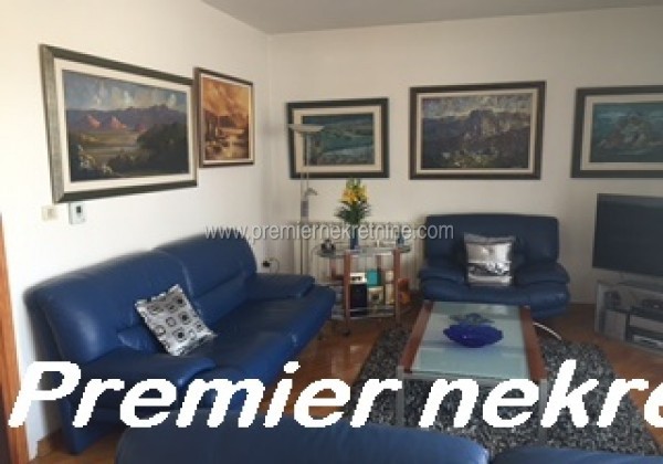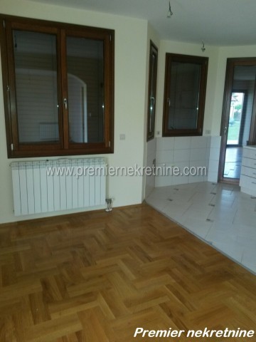 - Kuca posjeduje dva stana: na prizemlju dvosoban stan od 80 m2 koji je polunamjesten ( ima kuhinju i plakare) i koji se moze posebno izdavati ( cijena je 220 eura)i trosobnog stana na spratu koji je kompletno lux namjesten. Cijela kuca se izdaje po cijeni od 1000 eura, ima alarm, kultivisano dvoriste, centralno grijanje na pelet, hrastovi parket, unutrasnja stolarija je drvena, spoljna eloksirana, ima tri parking mjesta, plus garazu, telefonsku liniju, internet, satelitsku.