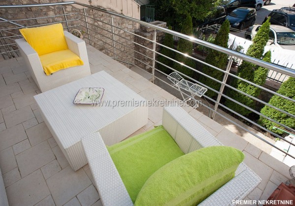 - Stan se nalazi u Petrovcu na setalistu 30 metara od plaze, ima 63 m2 lux opremnjen. plus 30m2 tarase, ukupna kvadratura stana je 89m2 Dvije terase. Jednu od 17.2 m2 Drugu od 9.15 m2 koja gleda na more. Cijena po m2 - 3000€ Dnevna soba i kuhinja 31m2 Spavaca soba mala 10m2 Spavaca velika 13m2 Wc veliki 3,40m2 Wc mali 2m2 Hodnik 4m2