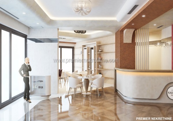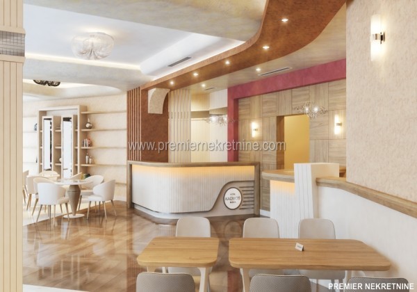 - Hotel je 1800m2 plus 500m2 garaze(16 parking mjesta). U pitanju je Hotel 4*. 26 dvokrevetnih sina, apartman i stan u kojem sam planirao da zivim sa porodicom. U slucaju da ga neko kupi dobio bi jos 3 dvokrevetne sobe umjesto stana na najgornjem spratu. Najmanja soba je 30m2. Strogo smo se drzali kategorizacije. Hotel ce imati bazen i malu saunu. Naravno restoran po Haccap-u sto je inace i obaveza svih novih Hotela 4*. U sledecim emailovima saljem slike spoljneg izgleda i enterijera prizemlja.