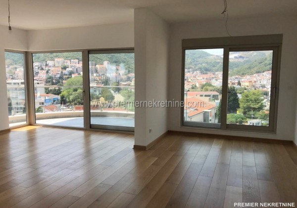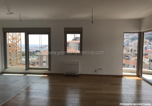 - Stan je na 7 spratu, gleda prema mora i Starog grada, povrsina je 103 m2, 3 spavace sobe (moze i 2 spavace sobe + velika garderoba sa prozorom), soba za bojler, masina za pranje itd, 2 kupatila, 2 terrasse. Svi unutrasnji radovi su zavrsene, spreman je za namjestanje i useljenje.