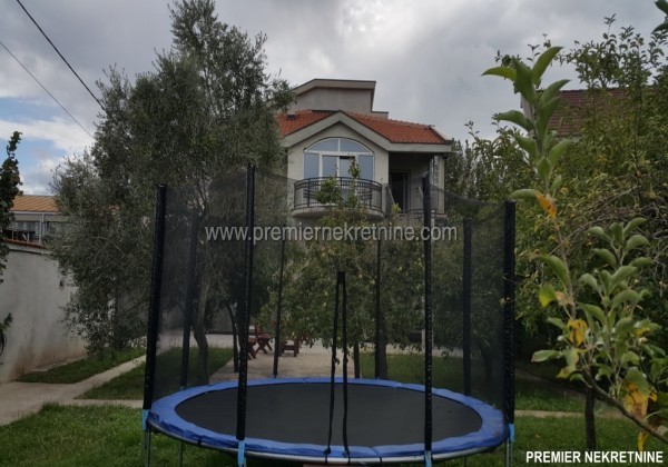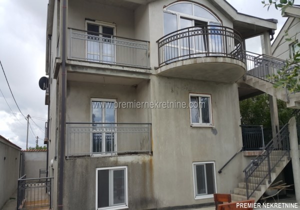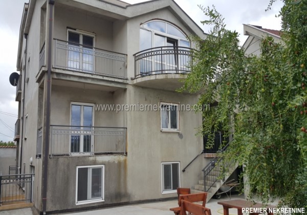 - Prodaje se kuca 600m2 i dvoriste 800m2 sa cetiri ulaza odvojena i suteren u kom je smjestena teretana, kuca ima ukupno 7 soba tj jedan stan jednosoban i dva po dvesta kvadrata , kuca ima veliko dvoriste sa vocnjakom i komplet je ogradjena sa visokim zidom , i metalnim kapijama . mogucnost je kompezacije za bolji stan u PG ili Beograd iz doplatu, kuca je 1/1 nema opterecenja.