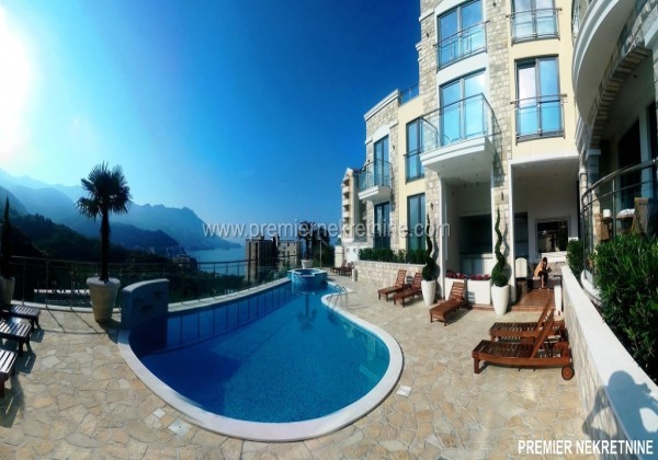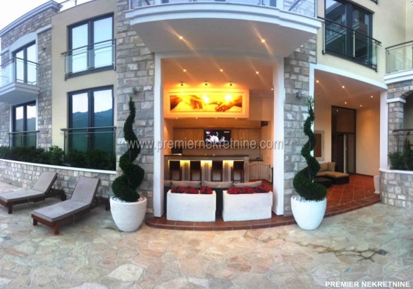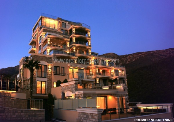 - . U prodaji su luksuzni stanovi, Penthouse 173m2. nalazi na osmom spratu. Stana imaju prelep pogled na more , Sveti Stefan i Rafailovice. Spratnost : 8 Sprat Povrsina stana: 173m2 ( od toga 11m2 svoj licni bazen) Cena stana : € 380 000 ( € 2196,00 / m2 ) Namestaj : polunamesten Grejanje: Podno grejanje i klima uredjaj Nacin Placanja: po dogovoru Udaljenje od mora : 450m