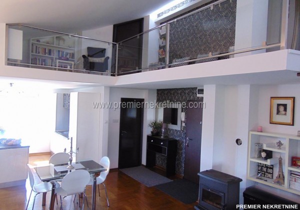 - Izdaje se dvosoban dupleks stan od 82 m2. Stan se sastoji od: open-plan kuhinje sa dnevnim boravkom i kupatilom na prvom nivou, galerijom sa kupatilom i dvije spavace sobe koje se nalaze na drugom nivou. Stan je u potpunosti opremljen ukljucujuci posteljinu, posudje i itd. U stanu se nalaze dvije klime a postoji i pec na drva. Stan je okrenut ka juznoj strani, ima demit fasadu i na prozorima se nalaze roletne sa komarnicima tako da je izuzetno dobro izolovan