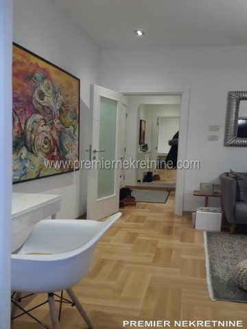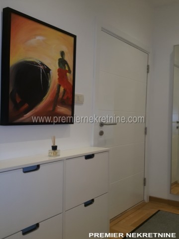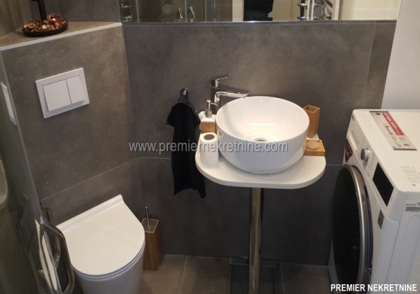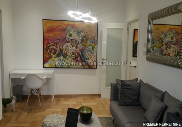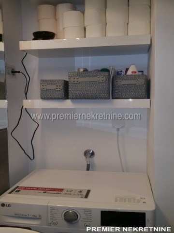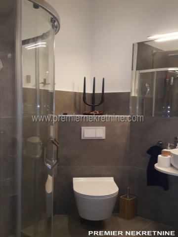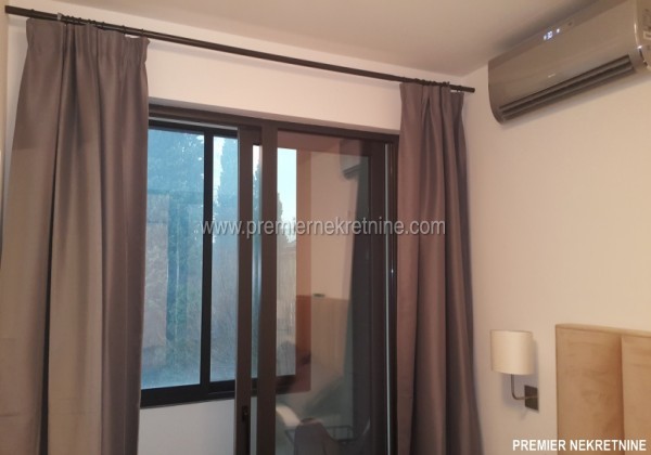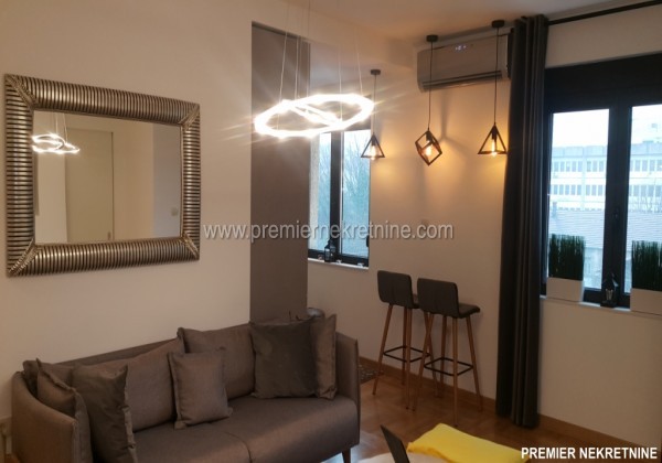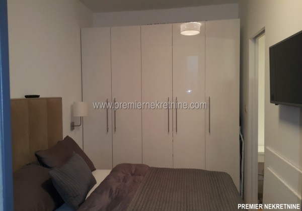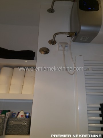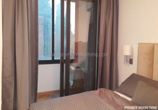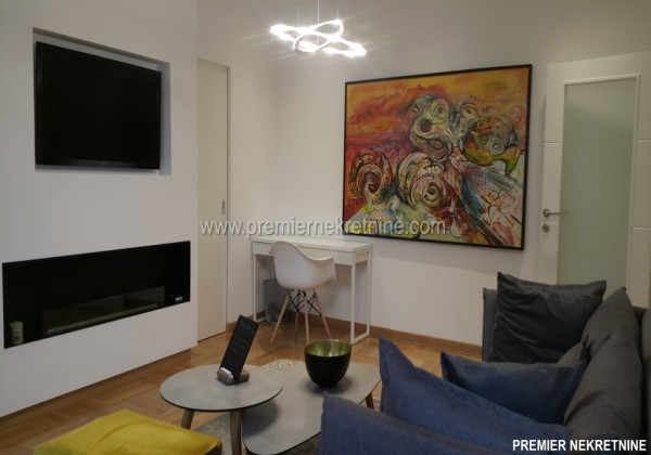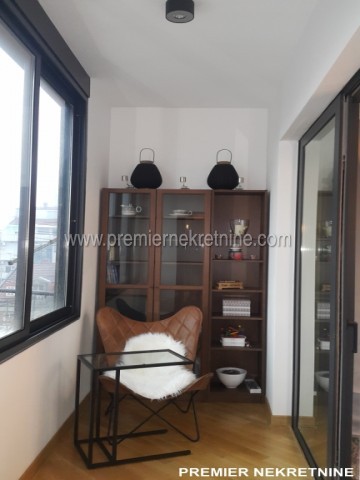 - Vrlo luksuzno opremljen stan u centru Podgorice (Hercegovacka ulica) velicine 44 qm juzne orientacije, vrlo suncan i svijetao sa velikim staklenim stijenama. Stan se sastoji od hodnika, kupatila, dnevne sobe sa kuhinjom i trpezarijom, biblioteke i spavace sobe. Stan je potpuno renoviran po najnovijim standardima. U izgradnji kao i u opremanju su koristeni samo najkvalitetniji materiali u Kupatilu: Plocice, Armature, podno grejanje u kupatilu cijelom povrsinom,cak i u tusu, susacom peskira, Perilicom i susilicom, u ostatku stana masivni hrastov parket. Ugradbena kuhinja visokog kvaliteta potpuno opremljena sa svim potrebnim za boravak (perilica za sudje, razne masine, posudje WMF i sl.) U dnevnoj sobi se nalazi lijepi Bioethanol ugradbeni kamin. TV u dnevnoj i spavacoj. Stan se grije i hladi klimom. Stan je potpuno opremljen svim potrebnim za zivot.(posudje,posteljina,kucanski aparati;svi potrebni poput usisivaca,pegle,daske za peglanje….. U izradi stana i opremanja su ucestvovali arhitekti gradjevine i interijera.