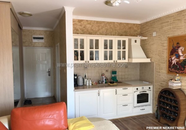 - Продаје се стан у Бечићима, 7 минута од мора . Стан је на 3. spratu, с једном спаваћом собом, терасом и погледом на море. Продаје се са комплетним намјештајем и кућним апаратима. Површина апартмана је 41 м2.