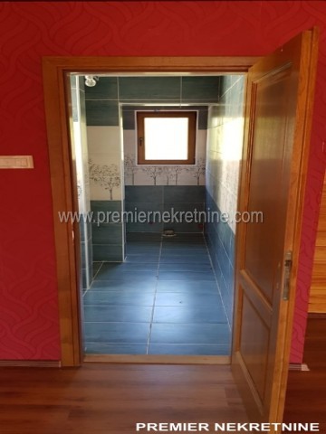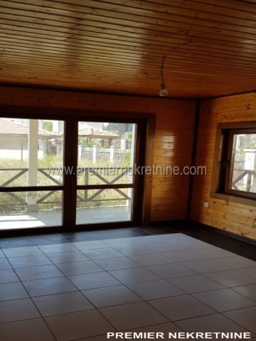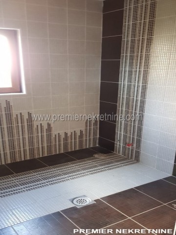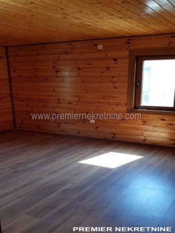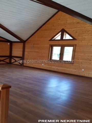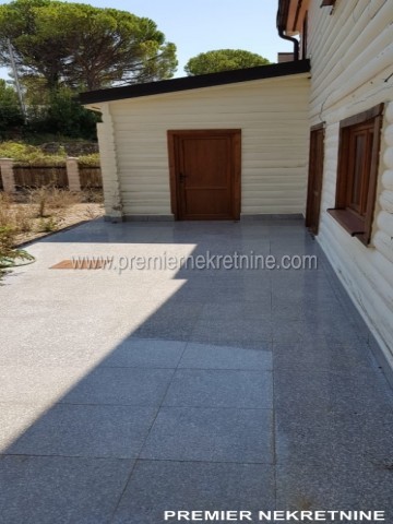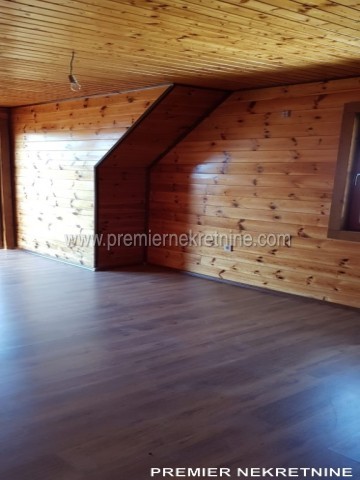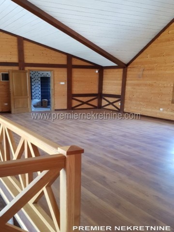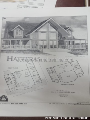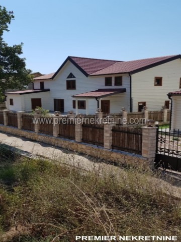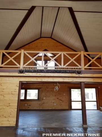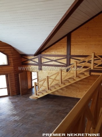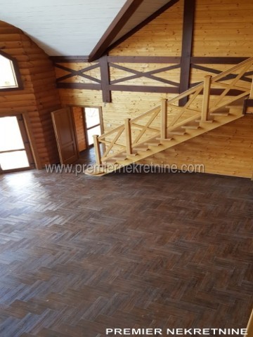 - Kuća površine 350 kvm, materijal drvo dovezeno iz Kanade, unutra lamperija, podovi pločica keramička i laminat u mokrim čvorovima zidovi keramička pločica , topli podovi , prozori i vrata fasadni PVC , unutrašnja vrata hrast, rezervoar za vodu, jama za bazen trotoar iz granita
