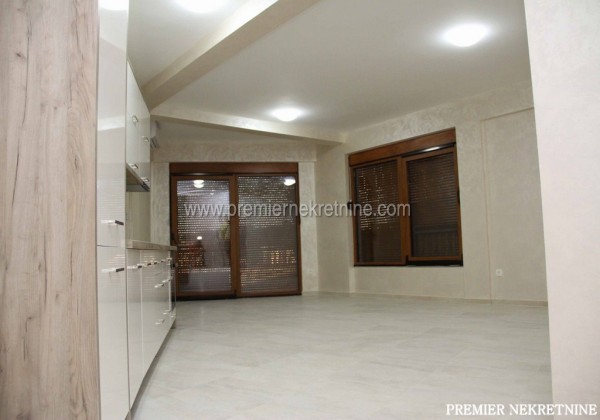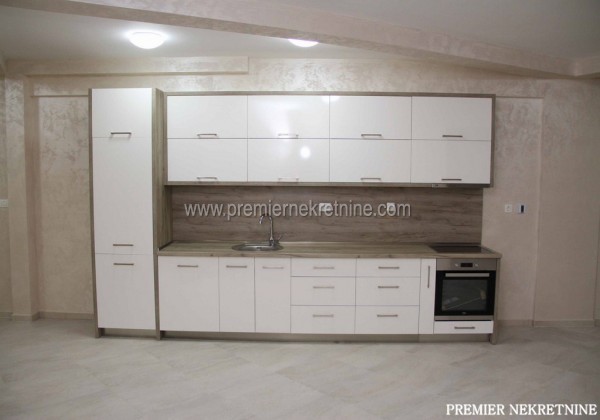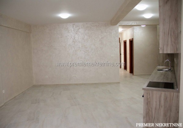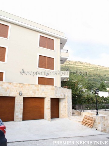 - Opis: Dvosoban apartman na visokom prizemlju ima 76 m2 (plus terasa od 50 m2). Uz stan kupac dobija garažu od 23 m2 za jedan automobil. Cijena 155.000 eura. Ovaj apartman ima svoj zaseban ulaz baš kao i preostala dva koja su već prodata. Apartman je opremljen kuhinjskim elementima visokog kvaliteta, inverterski multi split sistem klimatizacije, podno grijanje, vrhunska španska keramika i Hansgrohe sanitarije. Zidovi u dnevnom boravku su dekorisani u Sahara tehnici. Garažna vrata sa daljinskom komandom renomiranog proizvođača Hormann.