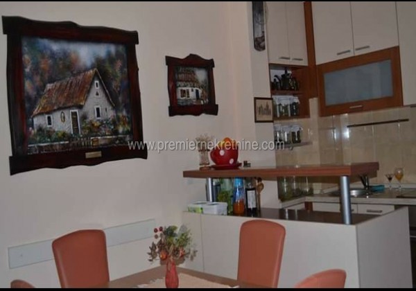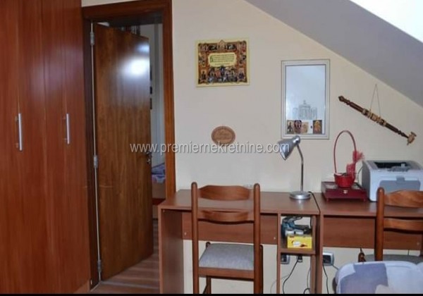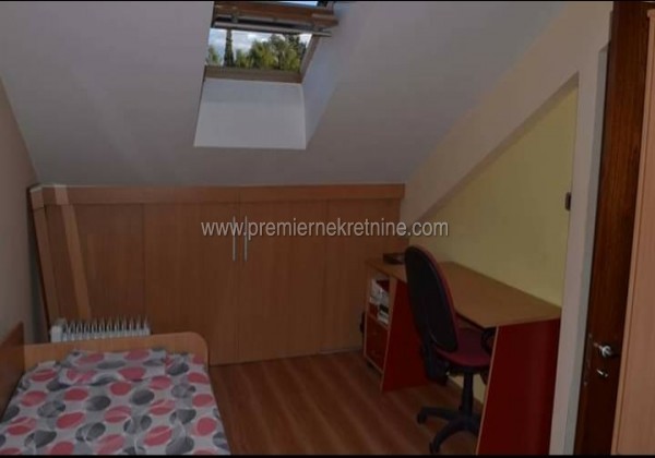 - Stan se nalazi u blizini Vezirovog mosta. Radi se o novom bloku zgrada u podnožju Gorice u pravcu Zagoriča.Ima 82 kvadrata. Trosoban. Na prvom nivou su dnevna soba sa trpezarijom i kuhinjom, spavaća soba, terasa i kupatilo, a na drugom (potkrovlje) su dvije prostrane sobe i ostave.Dnevna soba i potkrovlje su klimatizovani (grijanje i hlađenje), a za grijanje se mogu koristiti i radijatori (zidni i pokretni). Dnevna soba ima veliki prozor sa francuskim balkonom što čini da je prijatno osvijetljena. Iz spavaće sobe je izlaz na terasu. Na gornji sprat stana izlazi se uz drvene stepenice sa rukohvatom. Stan je funkcionalno i moderno opremljen. Dodatno ga dopunjuju, između ostalog, police za ličnu biblioteku, ugradni cipelarnik i odlični prostori za ostave koji se mogu prilagoditi potrebama novog vlasnika. Parking je moguć, kako ispred zgrade, tako i u privatnoj garaži. Stan se nalazi na 4. spratu bez lifta. Pogled iz stana koji je u potpunosti okrenut ka Gorici.Stan je okrenut ka istoku. Izdaje se na duže po cijeni od 400E mjesečno. Depozit obavezan