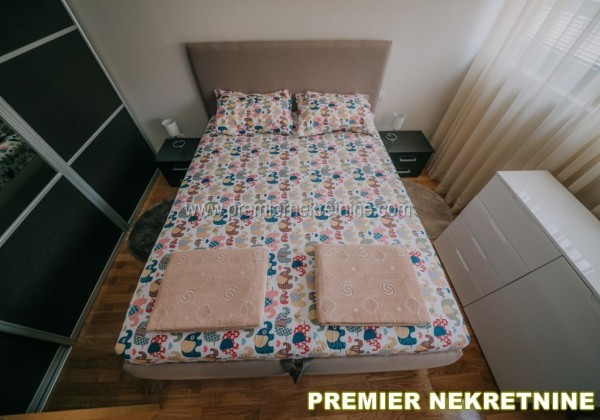 - Stan ima 54 m2, nalazi se u zgradi gdje je (kod autobuske stanice). Uz stan prodajem i garažno mjesto od 12 m2. Stan i garaža su uknjiženi 1/1. Stan se sastoji od dvije spavaće sobe, dnevne sobe, trpezarije, kuhinje, kupatila i male ostavice. Stan se prodaje sa svim namještajem, upravo onako kako i na slikama izgleda. Nalazi se na 5-om spratu u zgradi koja ukupno ima sedam spratova.