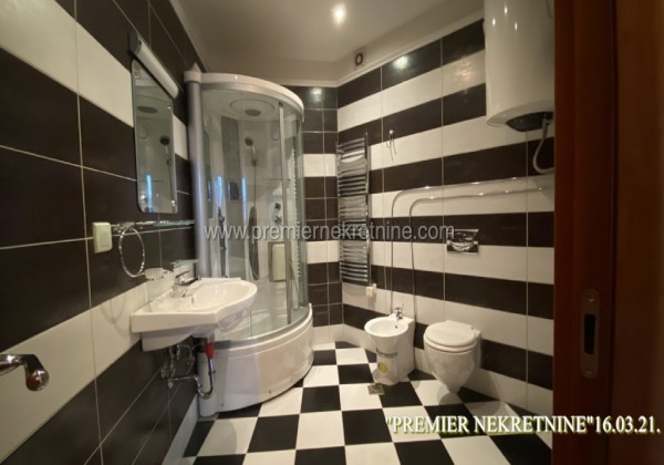 - Dvosoban i prostran stan od 100 m2 na petom spratu centar Podgorice zgrada hotela Nikić. Stan posjeduje dva velika i moderno opremljena kupatila. Kuhinja sa svim elementima renomiranog proizvođača vrijednosti 15.000 eura. Podno grijanje u kupatilima i kuhinji. Spavace sobe i dnevni boravak posjeduju 4 inverter klime. Vrhunska bravarija drvo-aluminijum koja je garant odlične izolacije. Mnogo plakara u sobama i hodnicima stana. Stan se prodaje polunamjesten. Pogled na dio grada Preko Morače, Staru Varoš i centar Podgorice. Stan je osim za zivot pogodan i za kancelariju.