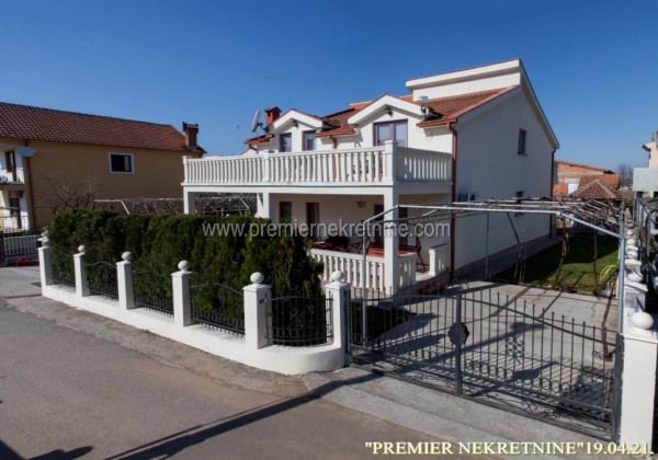 - Opis: Prodaje se namještena kuća 405m2 u osnovi. Kuća je građena na 6 nivoa. Ima fasadu, oluke I betonski krov. Nalazi se na idealnoj lokaciji, u blizini OŠ Branko Božović i vrtića. Lokacija je sa centrum grada povezana sa 3 strane. U neposrednoj blizini se nalaze supermarket, restorani… Dvorište je kultivisano, posađen voćnjak, kivi na krevetu 15x5, loza 4x6 a iza kuće se nalazi voćnjak sa ljetnjikovcem, sušarom, pečenjarom. Plac je površine 600m2. Kuća je ograđena sa svih strana I ima 2 kapije za ulaz automobile. Gradnja veoma kvalitetna, grijanje I hlađenje klima uređaji ( 7 kom). Struktura objekta: Prvi nivo : Ljetnja kuhinja sa ostavom. Drugi nivo: Predsoblje, veliki dnevni boravak sa kuhinjom I trpezarijom, wc I velika terasa ( 27m2). Treći novo: predsoblje, kupatilo I 3 spavaće sobe I terasa 14m2. Četvrti nivo: garsonjera 30m2 Peti nivo : Predsoblje, veliki dnevni boravak sa kuhinjom I trpezarijom, I velika terasa ( 27m2). Šesti nivo: predsoblje, kupatilo I 3 spavaće sobe I terasa 14m2.