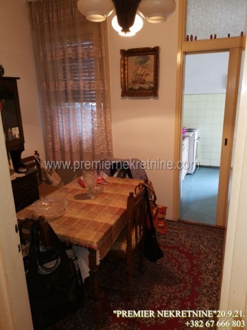 - Prodaje se stanu ul. 4 jul, Na Tuskom putu. Na 7 spratu a ima jos 2 sprat iznad njega . Kvadratura stana je 72 m2. Sastoji se od dvije spavace sobe, ima kupatilo i wc. Dnevni boraka,kuhinja i trpezarija. Dva hodnika. Veliki balkon na koji se izlazi iz dnevne i kuhinje, sobe imaju male balkone. Ima jos jedan mali balkon koji je napravljen kao ostava.