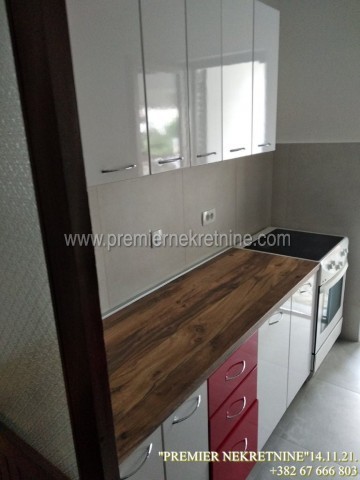 - Prodaje se veći dvosoban, renoviran i u potpunosti namješten, površina je 77m2 + 14m2 natkrivene terase. Sastoji se od dnevne sobe, trpezarije, kuhinje, ostave, dvije spavaće sobe, kupatila, toaleta, 2 hodnika i prostrane terase. Nalazi se na prvom spratu